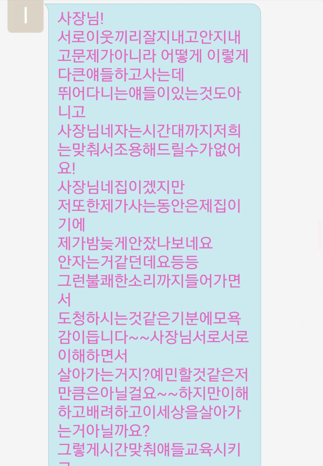 뛰어다니는 애들이 있는것도 아니고~ 하는 말부터, 여러가지가 제가 2년전에 겪었던 상황과 비슷하네요