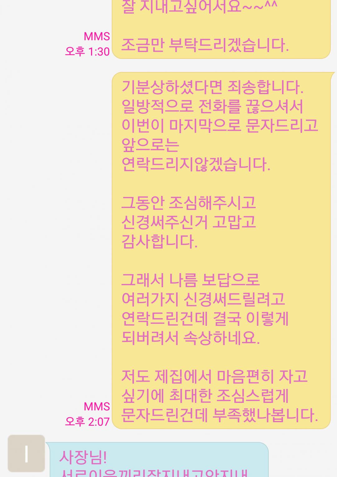 그리고 다시 정중히 문자를 보냈는데 이런 개쓰레기답장이 왔네요.