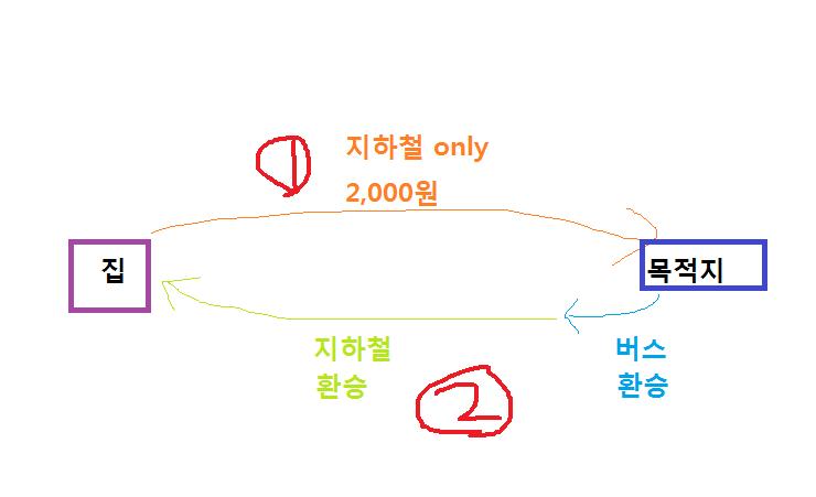 올때 버스로 환승했다가 다시 지하철 0원. (거리비 추가요금 제외)