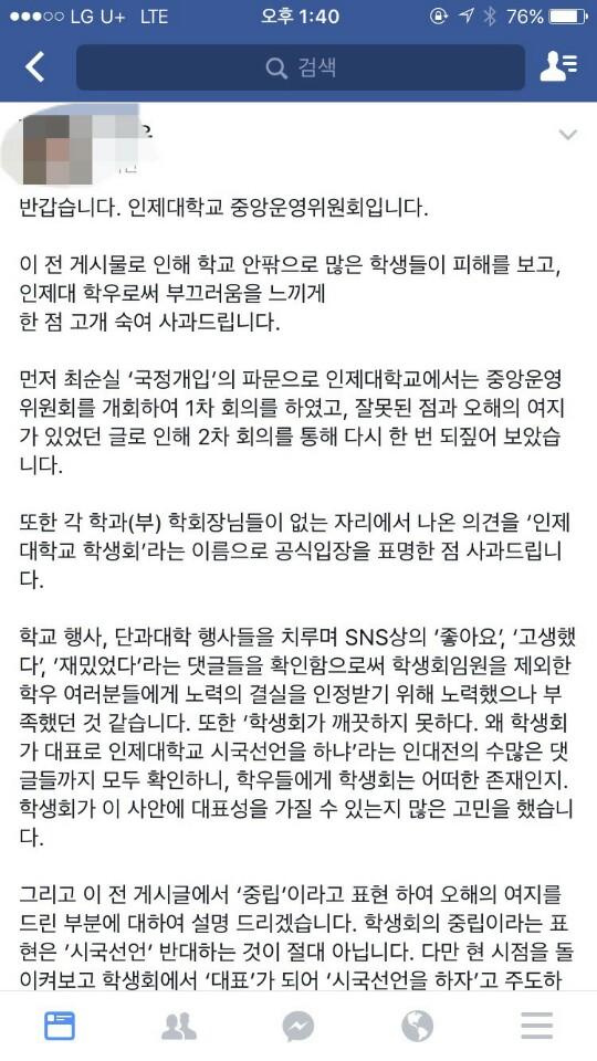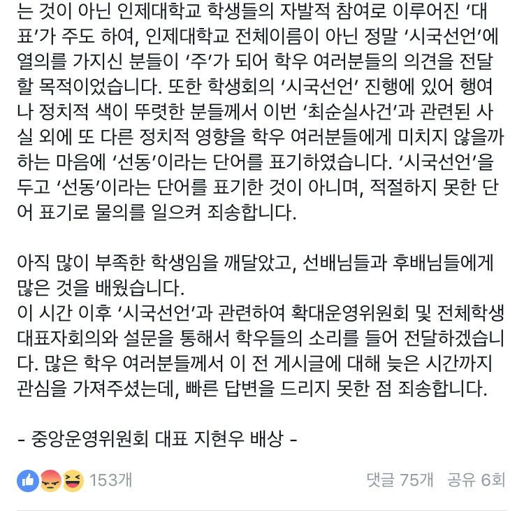 [인제대총학의 뒤늦은 사과 및 해명]