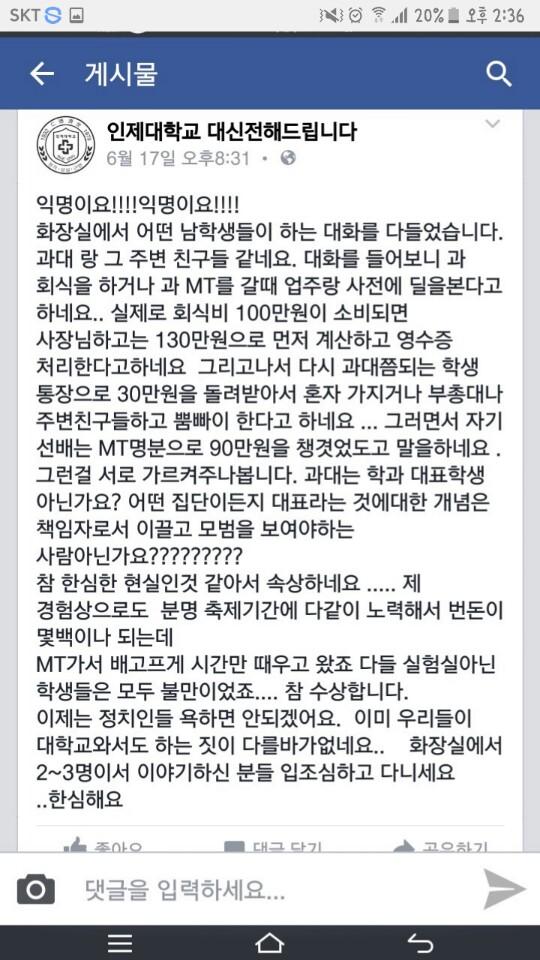 인제대 총학생회는 반성을 좀 했으면 하는 바램입니다