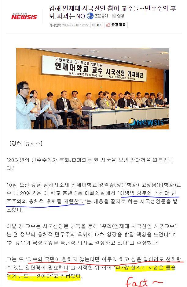 민주주의의 총체적 후퇴를 막기위해 2009년 시국선언에 참여한 멋진 교수님들