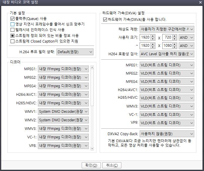 일단 다음팟을 키시고 F5-코덱/필터-비디오코덱-내장코덱/dxva 설정 들어가셔서