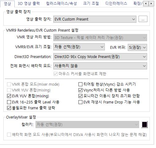 영상 출력 장치를 evr 커스텀 프리셋으로 바꿔줍니다.