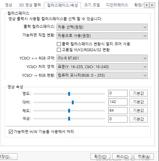 자 여기까지 했으면 하드가속 설정은 끝났습니다. 여기까지 해주시면 전에 렉걸리던 동영상 파일도 좀 더 잘 재생될겁니다.