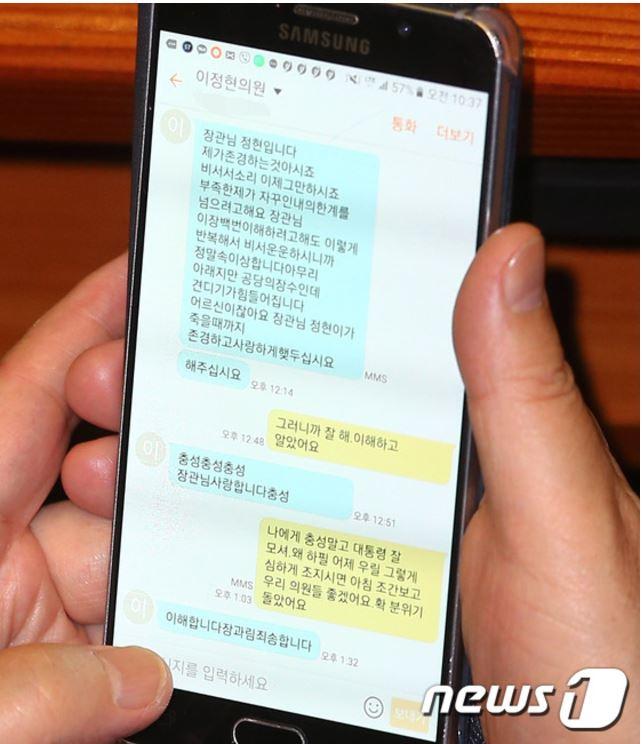 이정현과 박지원 간의 문자대화. 내용도 웃기지만...