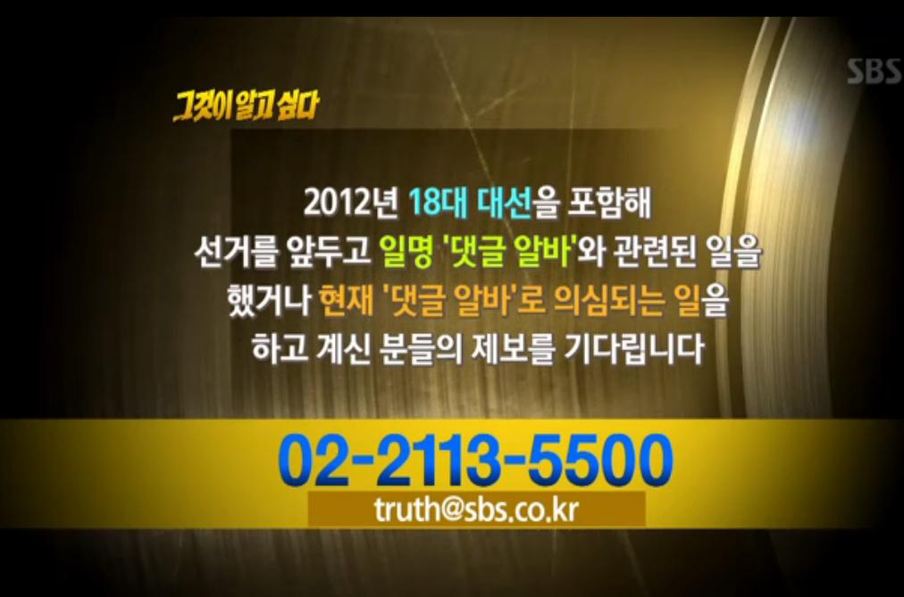 그것이 알고싶다 지난 대선 댓글알바 제보를 기다리고 있네요.