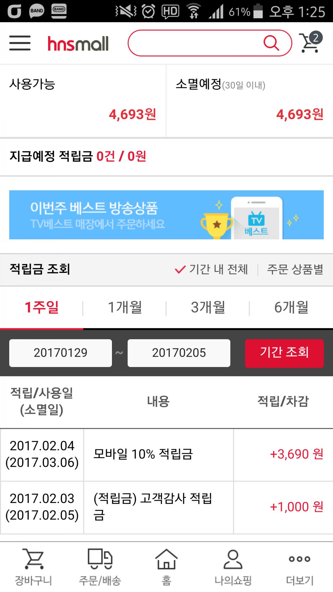 와이파이님꺼 화장품은 홈앤쇼핑이 나름 저렴해서 사는데 그에 따른 적립금이 생겨서요