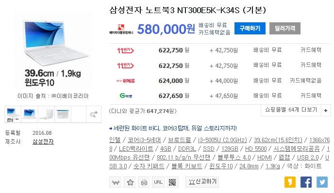 현금결제 가능하시면 이게 좀 더 저렴합니다. 사진에 나온 최저가는 용산업체라서 아마 카드는 안되고 현금이나 무통장입금 밖에 안되는데 대신 조금더 쌉니다.