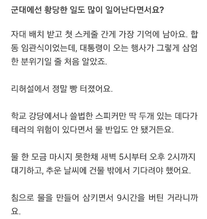 9시간 동안 물 한모금 못 먹게 하고 노래시킨 건가요?ㄷㄷㄷ