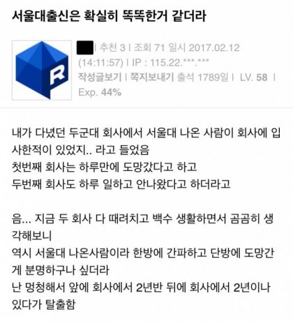 입사하고 하루면 참을성이나 끈기가 요구될 만한 일을 제대로 시키지도 않는데 도망갔다는 건