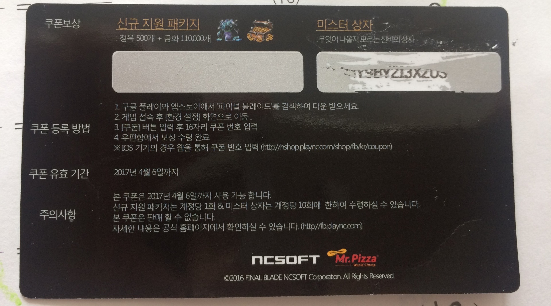 어제 피자시켜먹고 받은 거라,