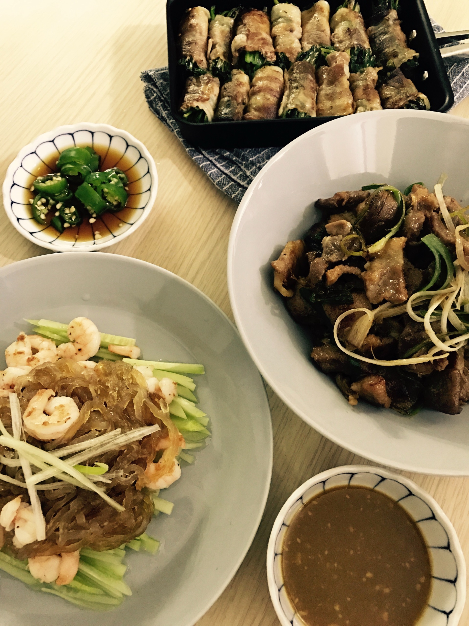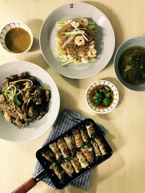 상큼한게 먹고싶어 해파리냉채와 파불고기, 대패삼겹부추말이예요.