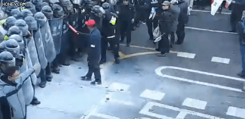쟤네는 태생이 빨갱이들이라 처음부터 폭력시위였죠. 지나가는 사람들한테죄다 시비걸고 ..
