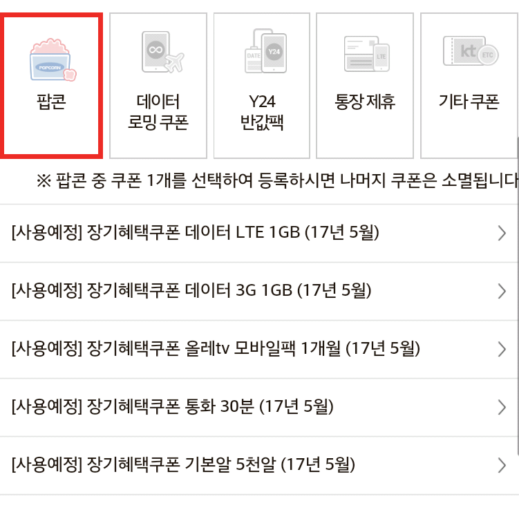 5월 중순쯤에 팝콘혜택 알림문자 오긴오는데 미리 사용해도 상관없어요^^