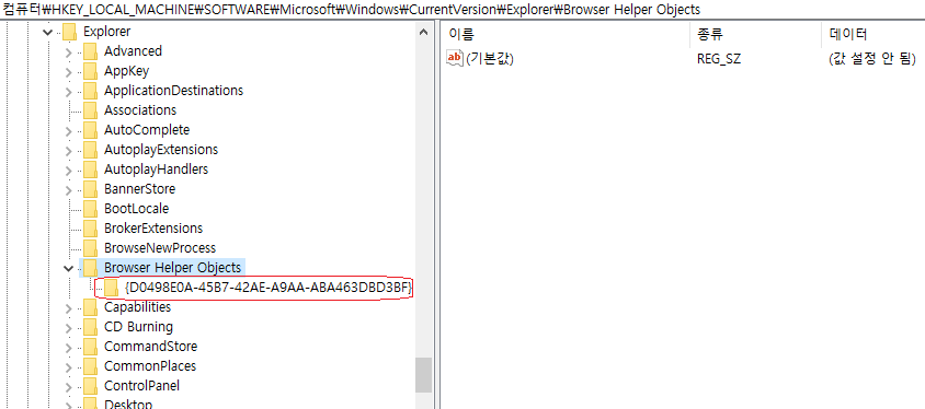 검색해보니 Browser Helper Objects 폴더가 없으면 만드는 방법도 있던데