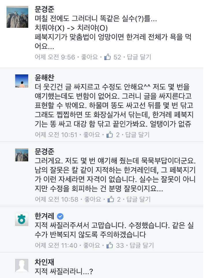 맞춤법 지적하자 지적싸질러줘서 땡큐~ 이러다가 여론악화되니까