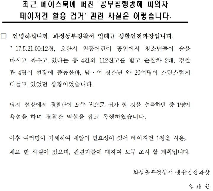 진압은 집압답게 해야하는데 고작 테이저건인가요.
