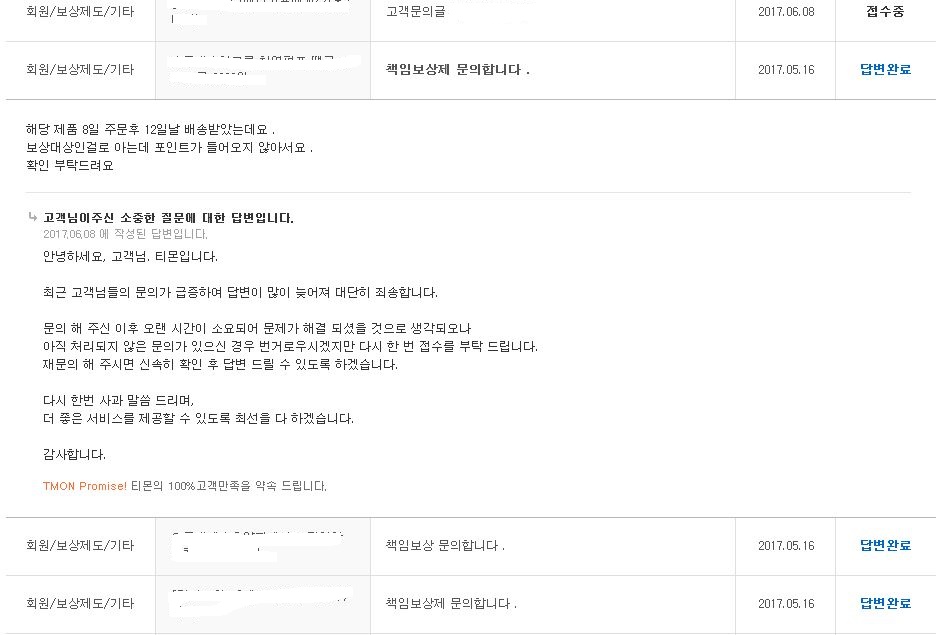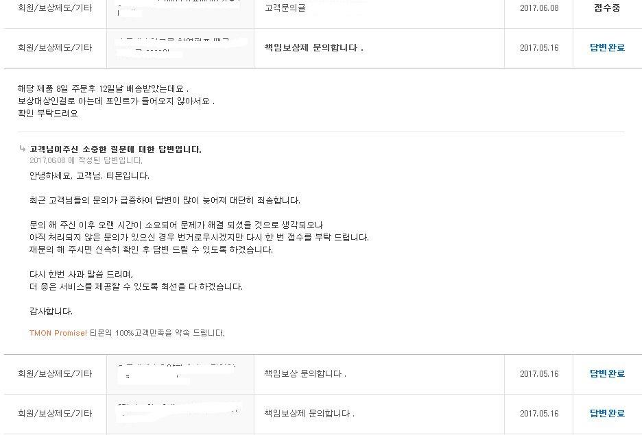 저도 2주가 넘도록 답안줘서 전화로 처리했습니다.. 전화연결도 제가 할때는 너무 안돼서 짜증났어요ㅠㅠ 자동응답기로 넘어가다가 끊어지고 끊어지고 3번만에 연결되었습니다...ㅠㅠㅠ |