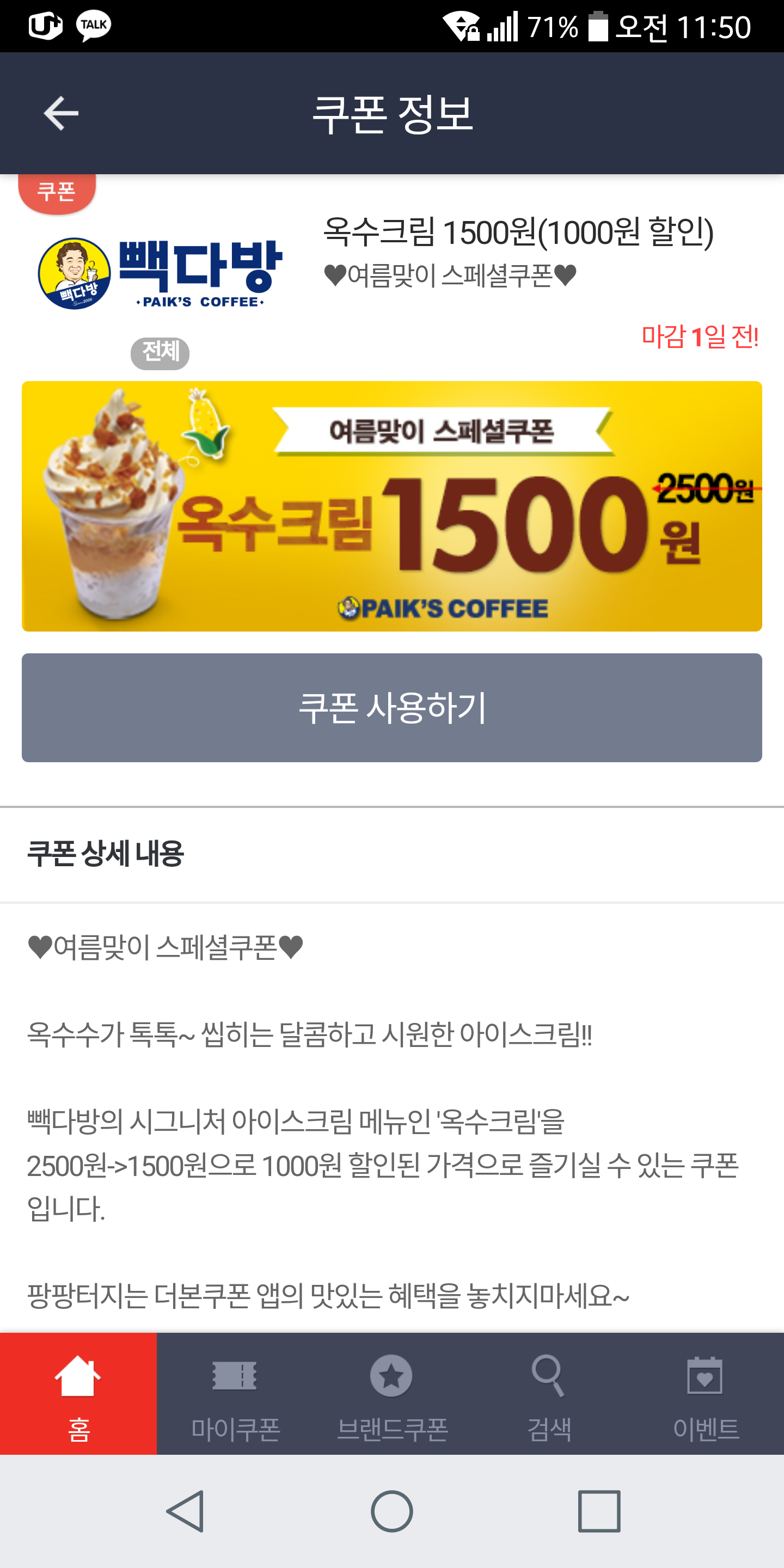 이전에 놓친 쿠폰들보단 뭔가 아쉬운 듯 하지만 그래도 첨 받으니 좋네요 ㅋ 맛나게 드세요^^ |