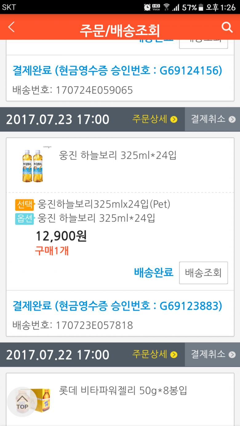7월31일껀 하늘보리 1L 12병 이었어요.