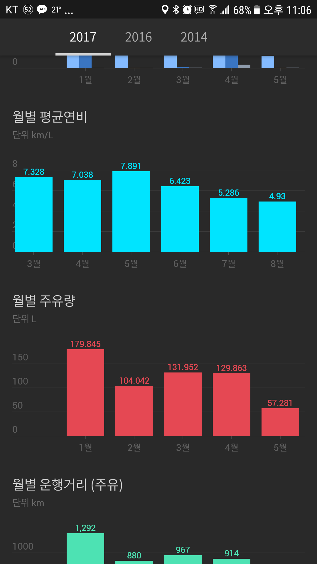 경차가 연비 별로다 그중에서도 레이는 쉣이다 뭐다 해도 거진 100키로당 8천원에서 만원꼴은 타네요...4만원 넣으면 350~400사이 왔다갔다 합니다...고속주행을 많이해서 4~5천 rpm으로 조지는데도 탈만해요...