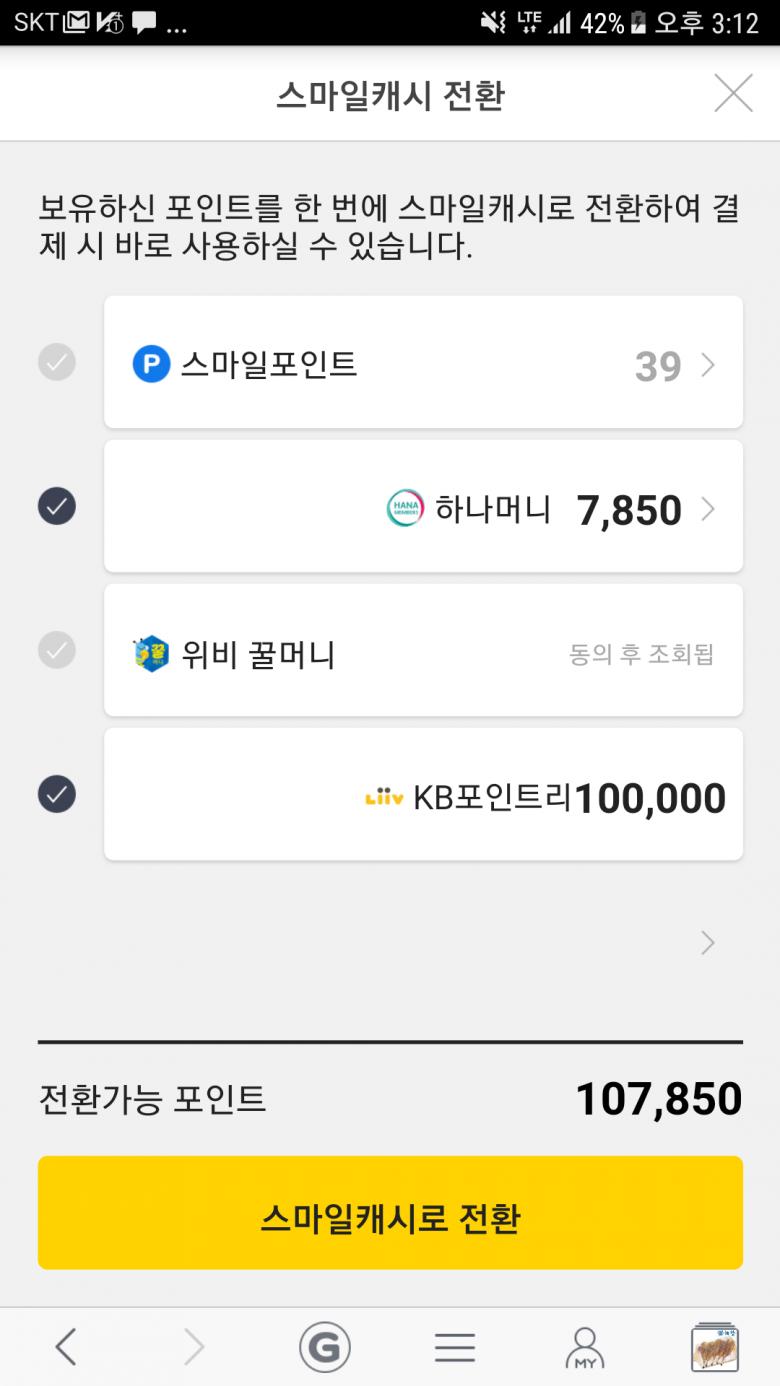 포인트 전환한 스마일캐쉬 하나머니로 넘어가나요?