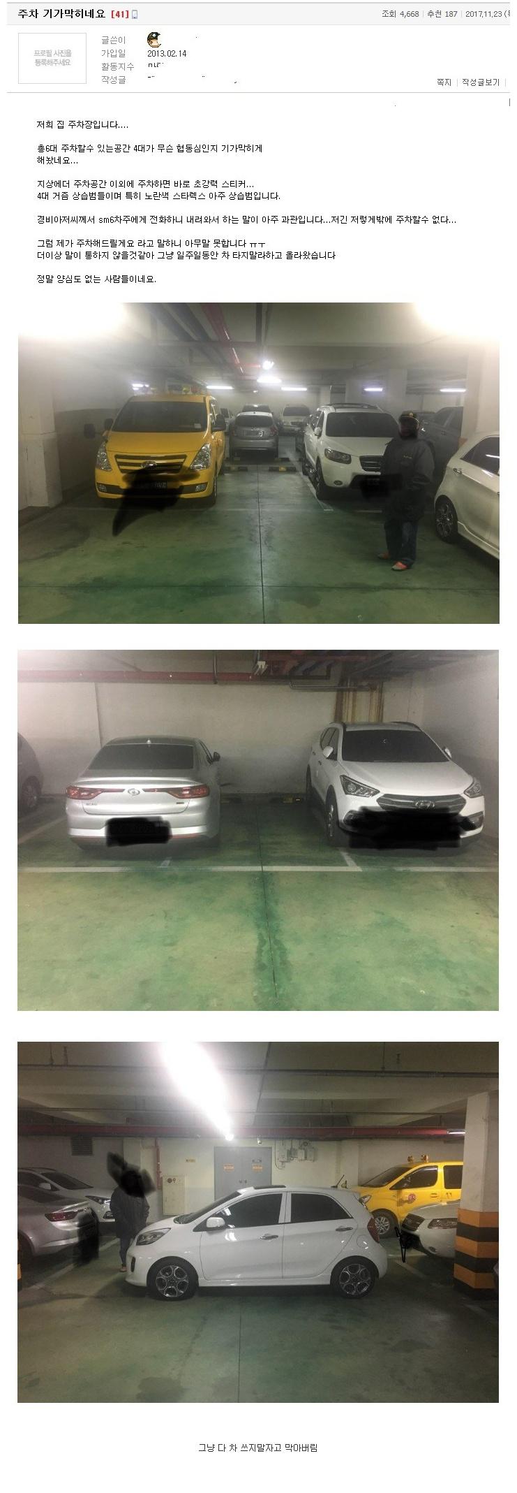 일단 글쓴이가 언급해서 상습범인거 같구요.. 아무래도 주차선 물고 일단 주차를 했으니 도긴개긴같네요 |