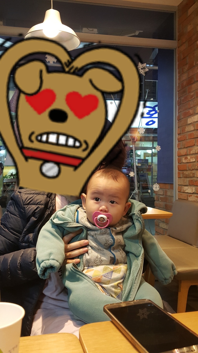 아기 어머니 얼굴에 예쁜 스티커 붙여주시지 왜 저런걸ㅠ 아기는 이디야 가서 커피대신 쪽쪽이 빠는 거에요? ㅋㅋ귀엽당^^ |