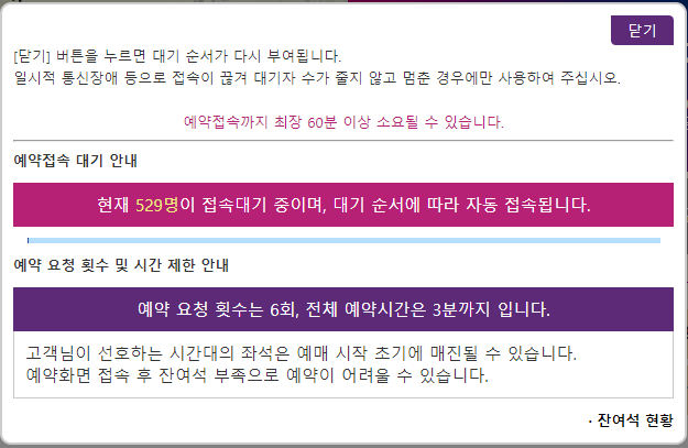 저도 시간까지 딱 맞추진 못해도 예매가 되서 다행입니다.