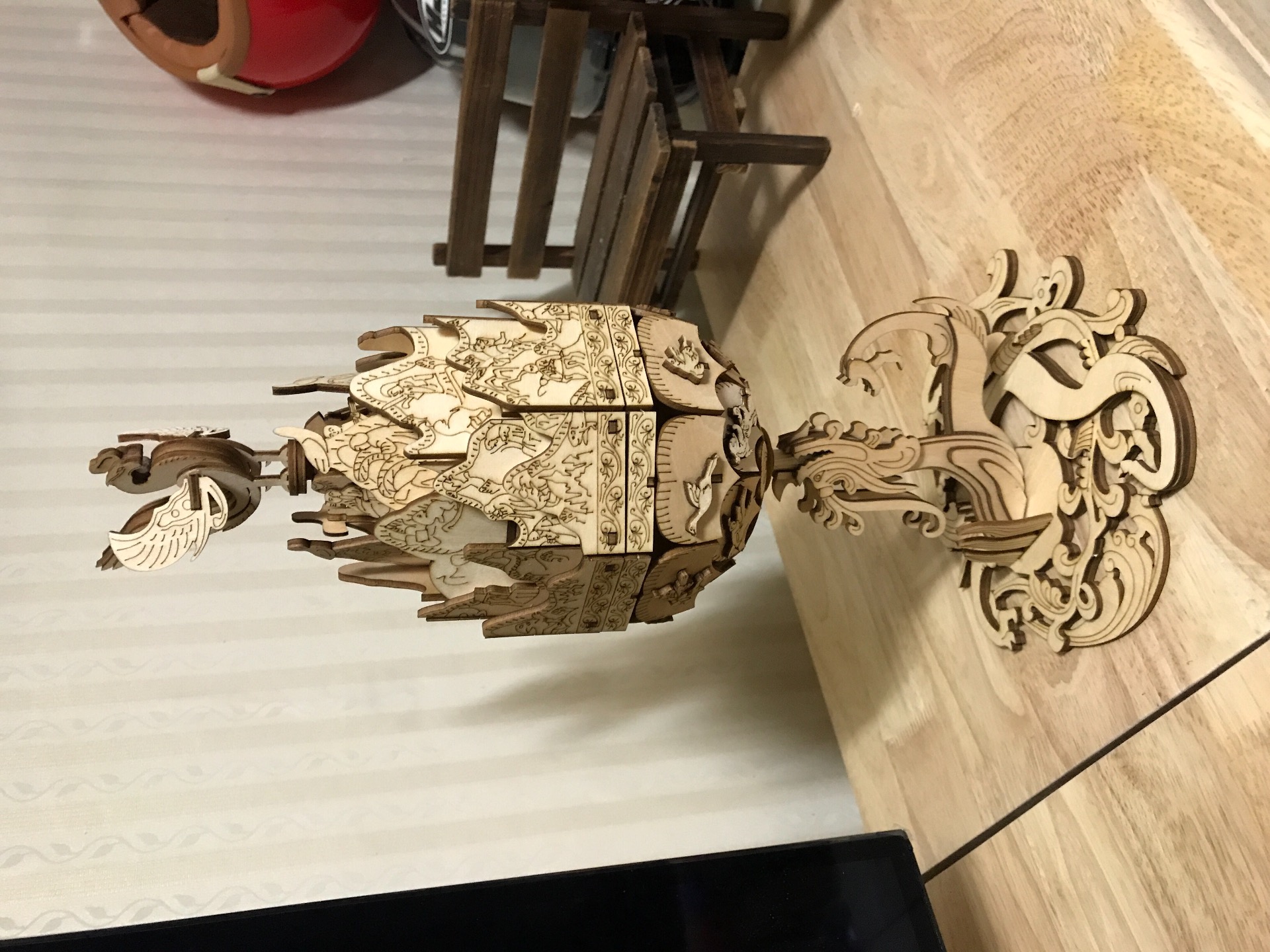 나무에 레이저로 조각된거 뜯어서 목공풀로 조립하는 방식입니당 |