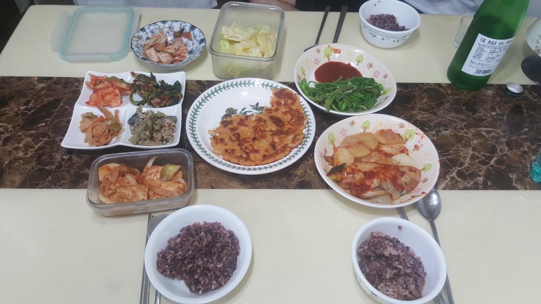 남편이 오늘 집에 있는 날이라 오랜만에 이것저것 많이 했네요.. 생선조림 김치전 미나리 데쳐서 초장에 찍어먹으려고 준비하고 그리그ㅡ 밑반찬 만든것하고 푸짐하게 먹네요..