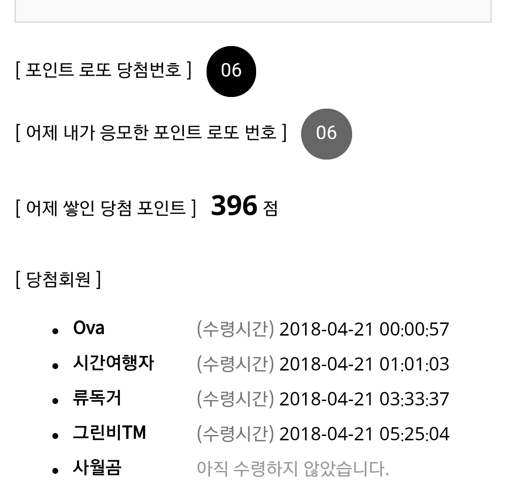 4월에만 벌써 포인트로또 1등당첨이 3번째네요.