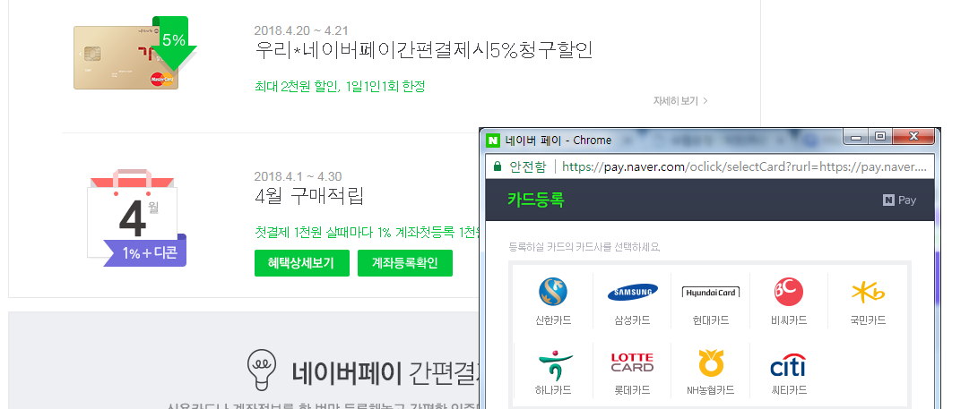 네이버 페이에 우리은행 간편결제 카드가 있는건가요?