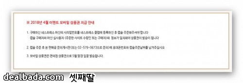 톡딜에서 구매하신분들도 10일내에 공홈이나 부티크 클럽에서 캡슐커피를 주문하시면