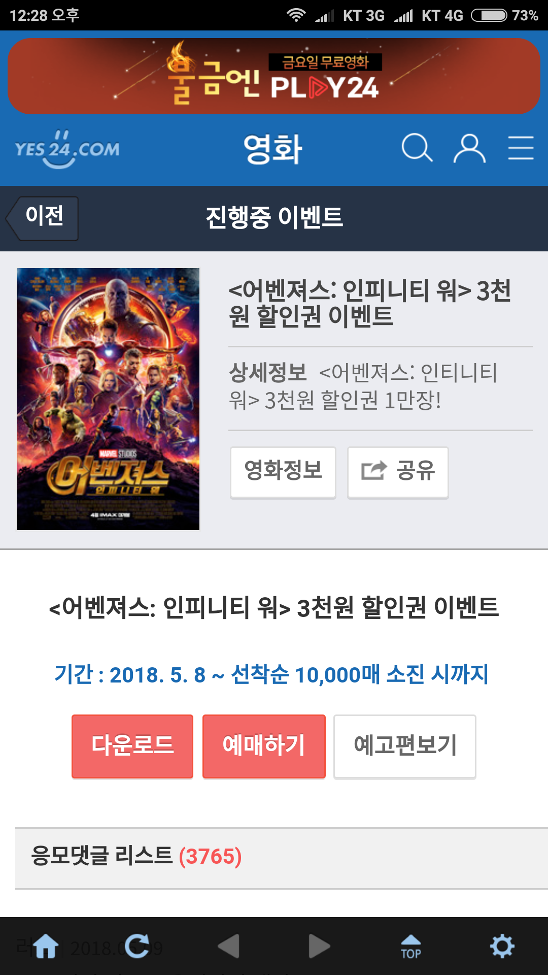 인피니티워 900만 돌파기념 1만명 3천원 할인.
