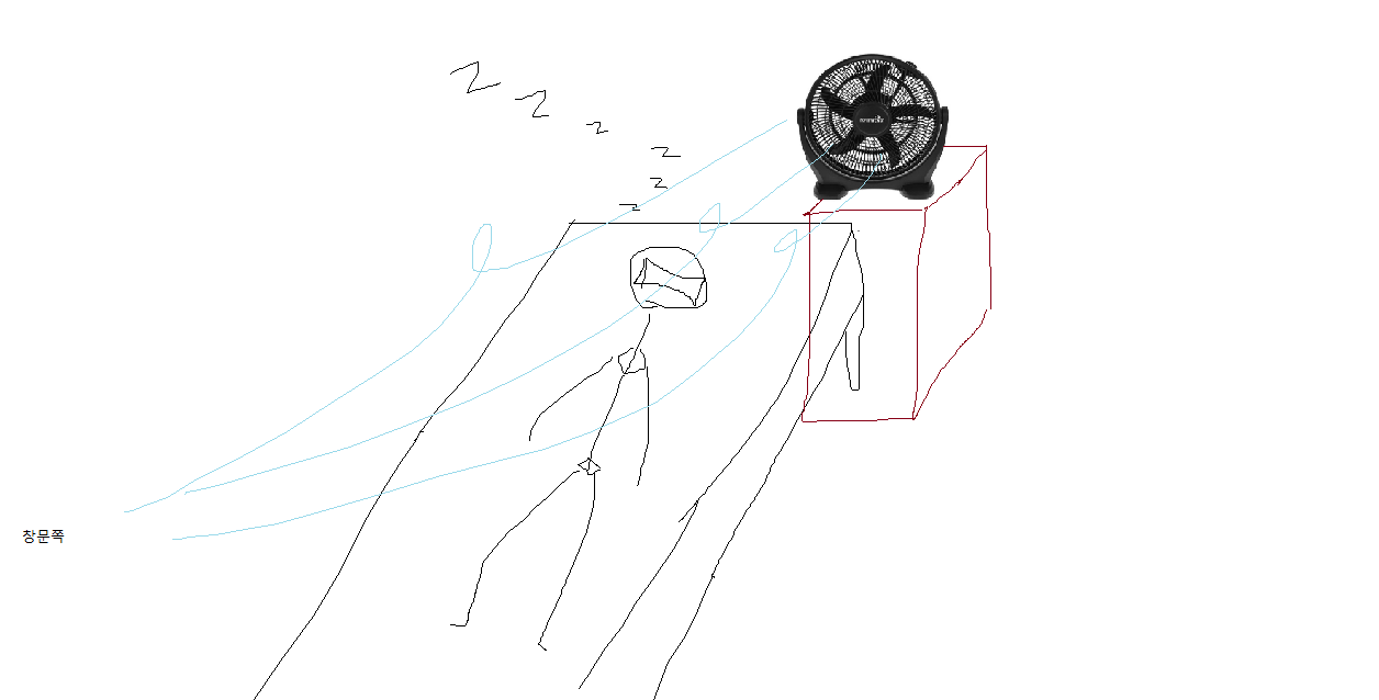 선풍기를 벽쪽으로 하세요 벽맞고 바람도 몸쪽으로 와요