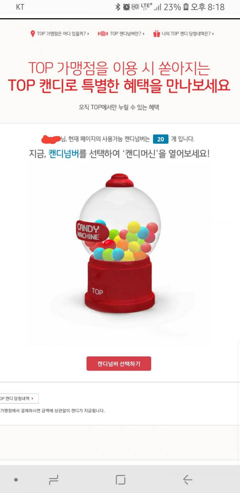 간간히 올려드리는 BC TOP포인트 캔디머신입니다.