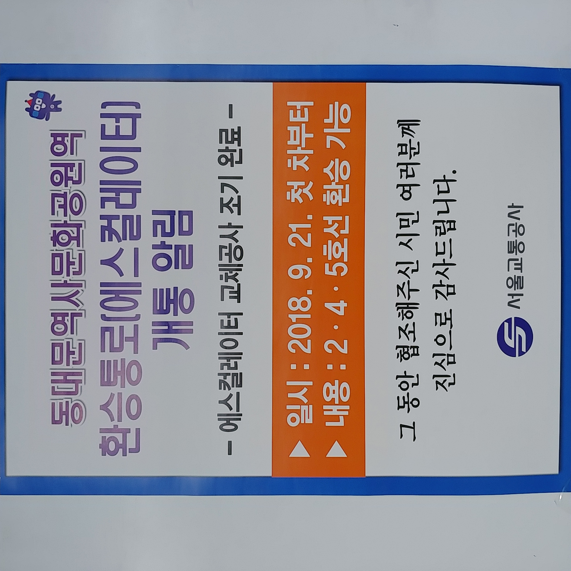 오늘 지하철역에서 봤는데 추석전에 이미 공사 마쳤네요.
