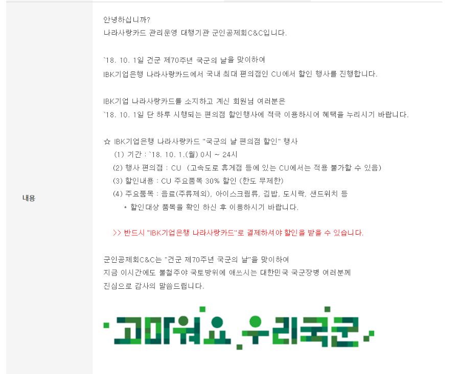 올해는 KB 나라사랑카드는 국군의날 행사 없나보네요ㅠㅠ > 자유게시판
