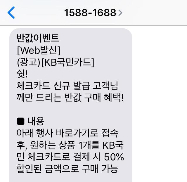 저는 그냥 필요해서 발급했는데 문자로 보내줬어요. 신용카드 발급 받으면 KB자체로 보내주는 것 같더라구요.