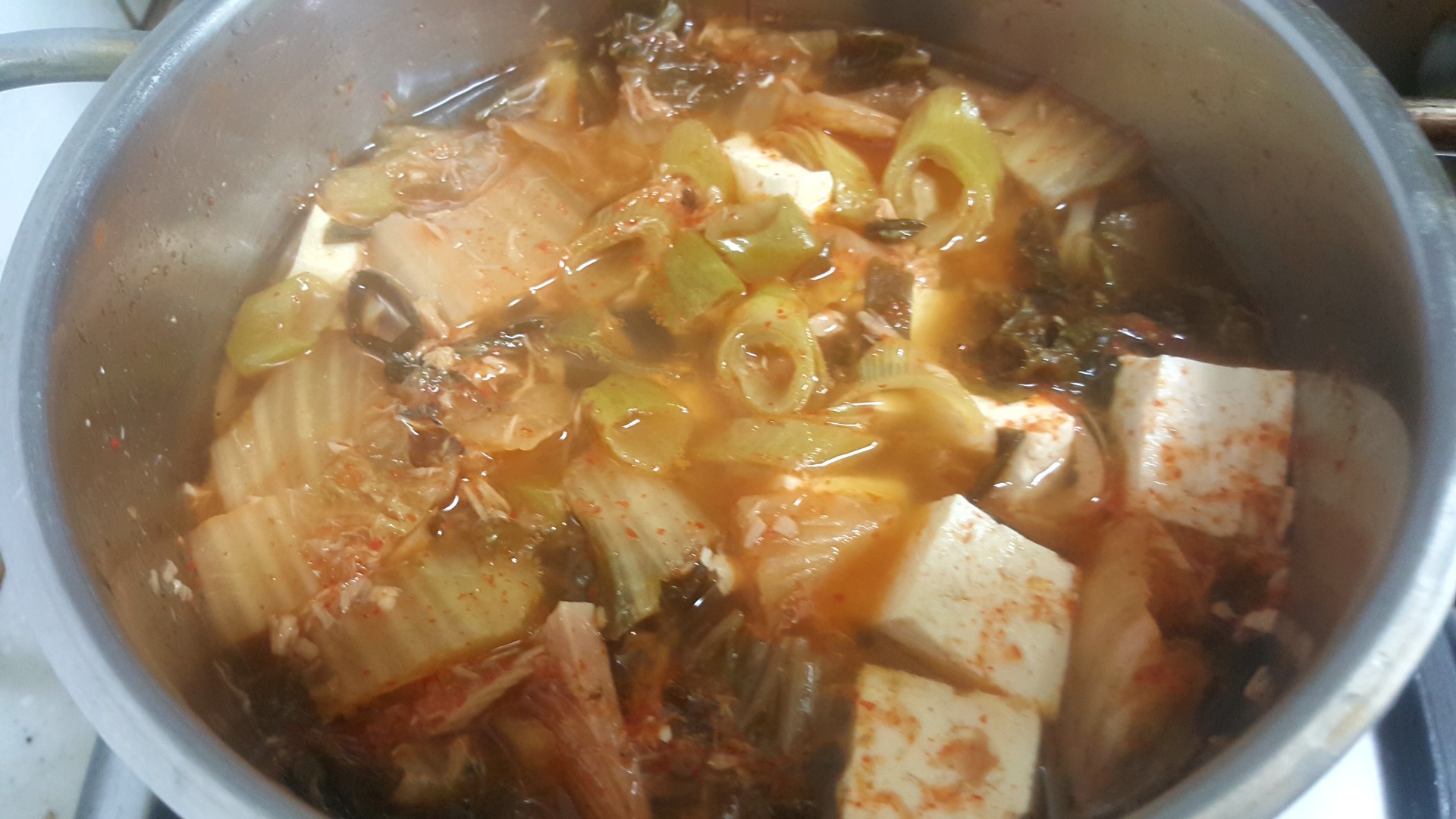 낼아침 찬거리가 준비되지 않아서..그냥 찌개하나로 퉁치려고 늦은저녁 끓였네요..그래도 아이들 간보더니 맛있다하니 다행인듯요..