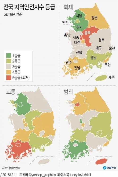 1. 행안부, 전국 지역 안전도 발표 → 범죄 분야 최고 안전(1등급)은 전남, 세종, 2등급은 대구, 경북, 울산, 전북... 서울, 제주는 5등급으로 최저.(중앙 외)▼