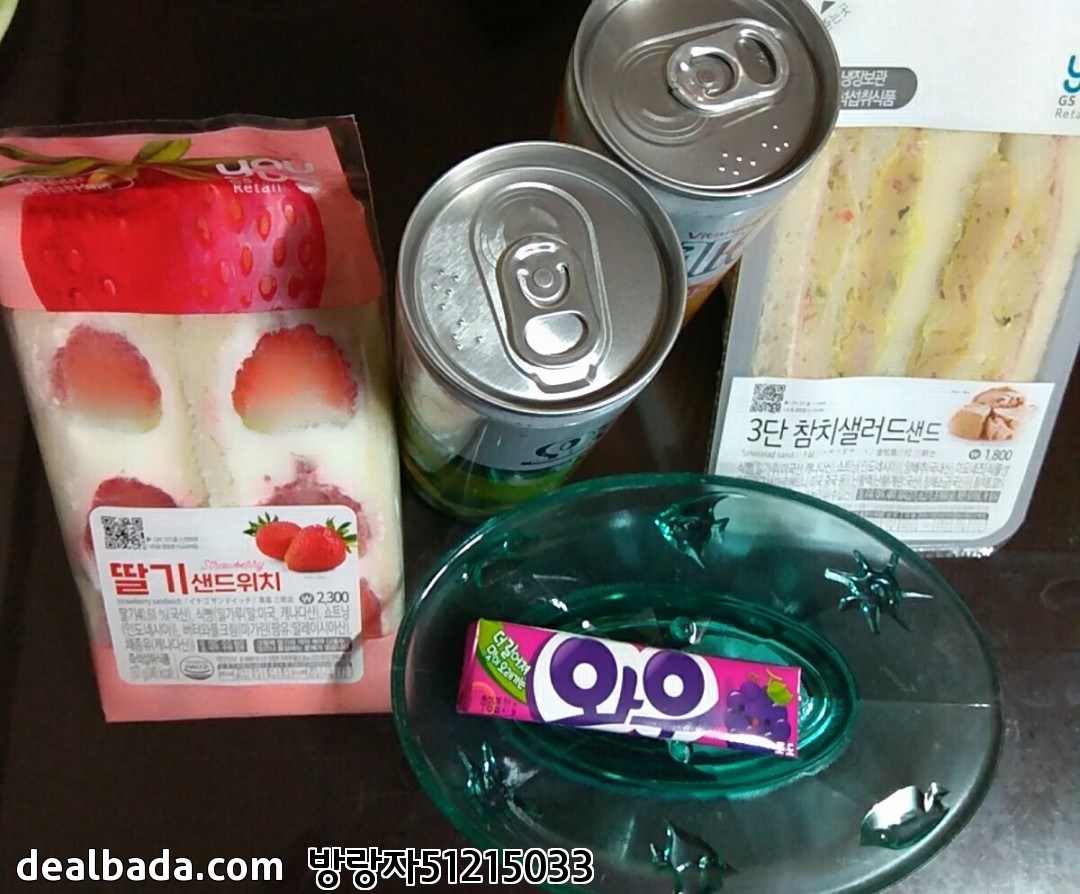 오늘은 일찍 갔더니 1800원 샌드위치가 남아 있어서 저도 똑같이 딸기, 3단참치, 오란씨 오렌지 샀습니다