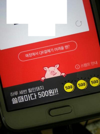 보시다 시피 QR 결제시 500원 할인 이라는 문구가 뜨며