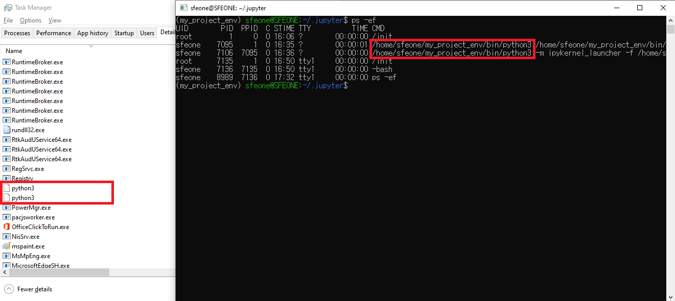 리눅스 가상환경을 윈도 OS 위에서 지원되다는 뜻입니다.