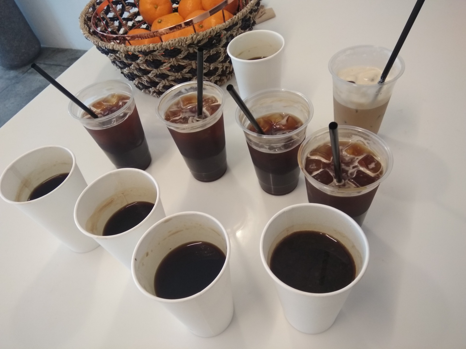 원두가 4종류면 아메4잔 아이스아메4잔을 줄세워놓고