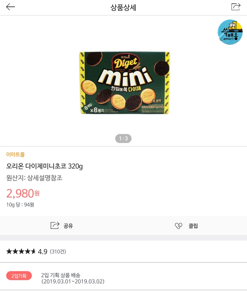 이마트에서 몇가지 과자 1+1하는군요