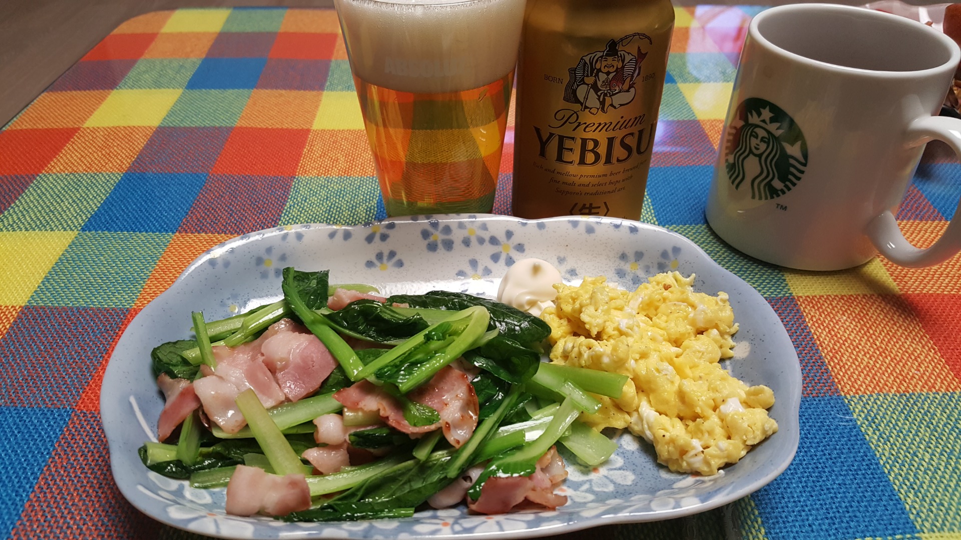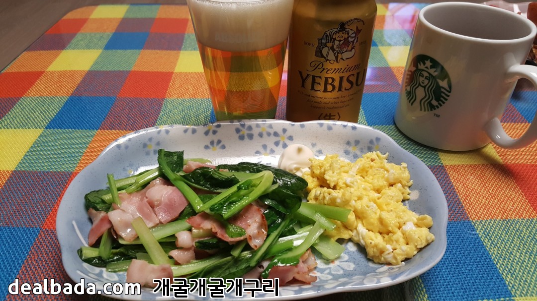 소송채 베이컨 볶음이랑 맥주 ...