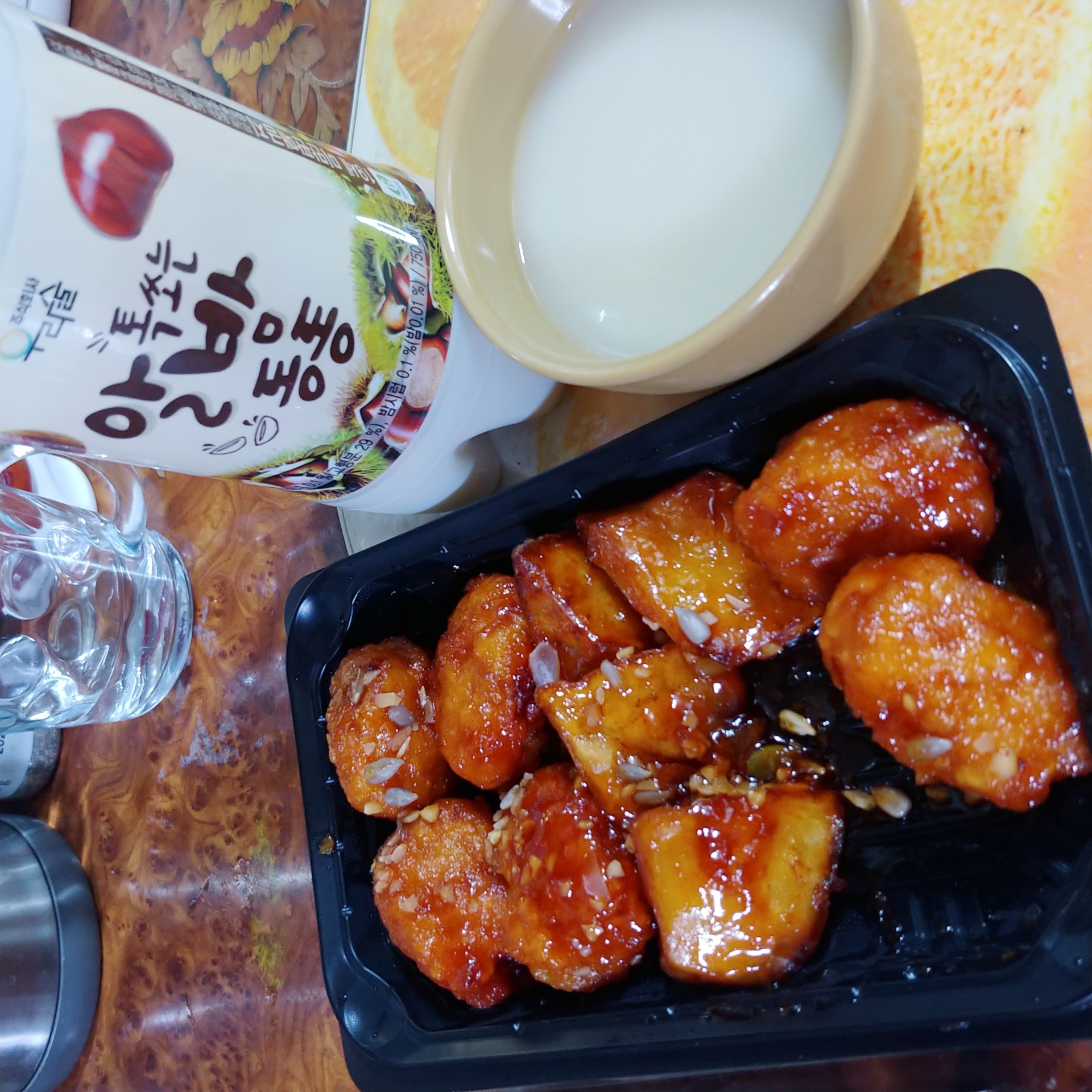 알밤막걸리 2천원. 치킨강정 3700원이에요
